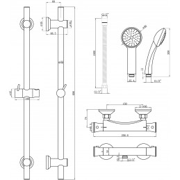Two outlet thermostatic mixerPremium cast valve with brass cover plateIntegrated handset and elbow200mm brass shower head and brass armMinimum operating pressure 0.1 barComes with a 5 years guarantee on body and finish, 3 years for cartridge & 1 year for parts guarantee for peace of mind