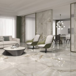 size: 60x120 cm. / 23,6”x47,2 “ Porcelain Tiles Finish: Polished Tiles: 1.44m2 Box: 2 Tiles Suitable for Wall and Floor Tiles