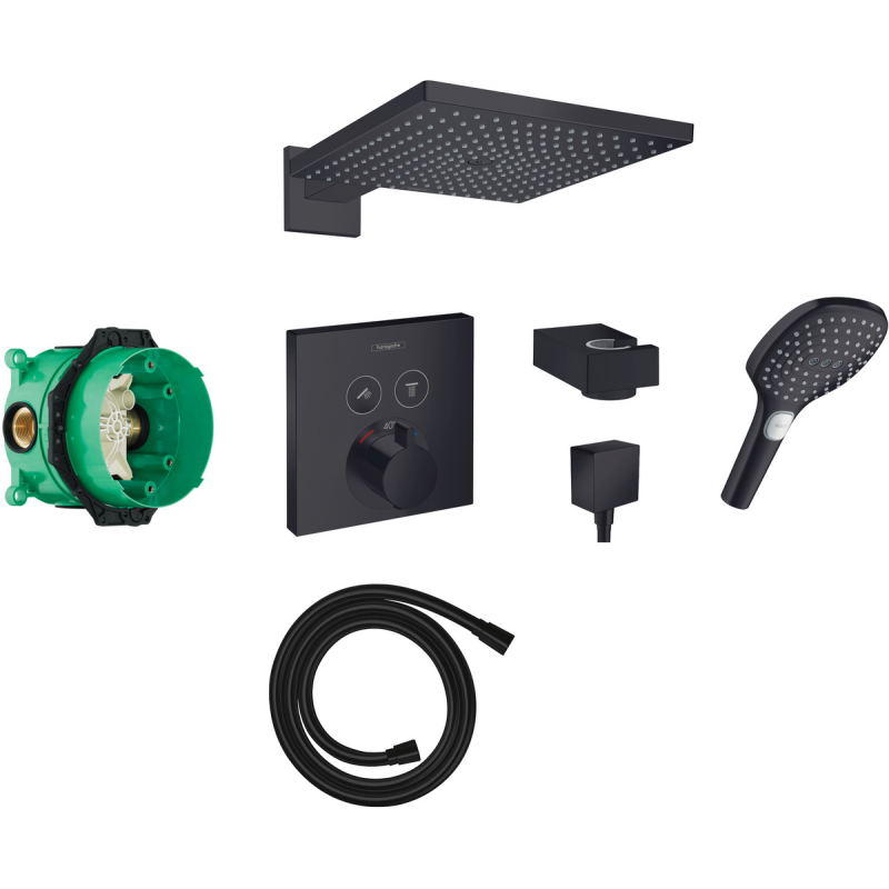 Square Select concealed valve with Raindance (300) overhead and Select hand shower MB