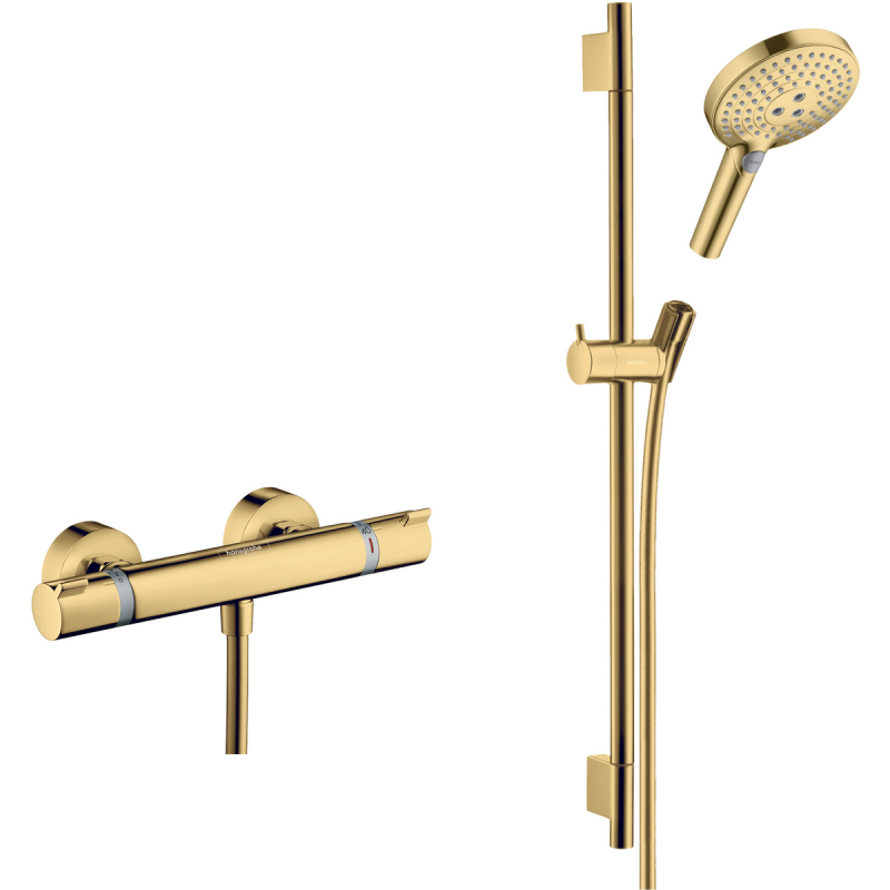 Round Thermostatic Bar Mixer w/Riser Kit - Brushed Brass