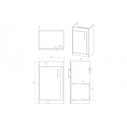 Trendy and durable with a 16mm cabinet, sides and back Handles are to be bought separately. There are no pilot holes on the door, which is fixed and opens to the left The door has a small rubber stopper for extra protection Dimensions: H 518 x W 510 x D 390mm Includes ceramic 1TH basin MFC door and cabinet with lacquered finish Soft close door hinges 5...